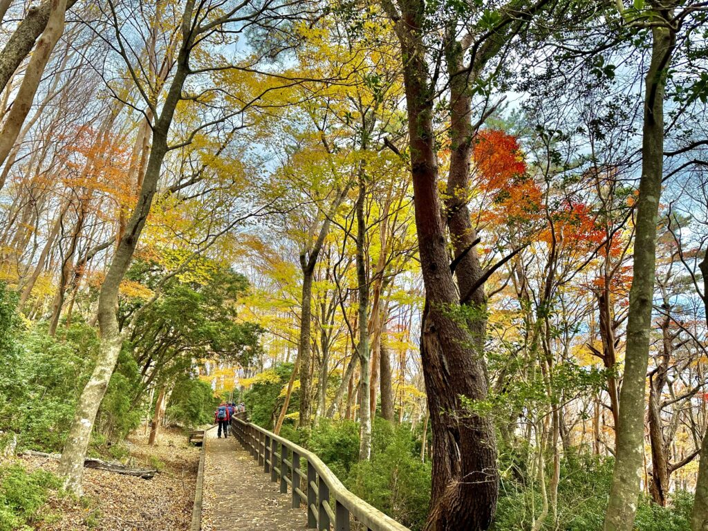 三重県・大台町にある北総門山「野鳥の森コース」登山イベントの参加レポート後編です。黄金色に輝く秋のヒメシャラ群生地、展望台からの景色、奥伊勢フォレストピアの洋食ランチをお届け!