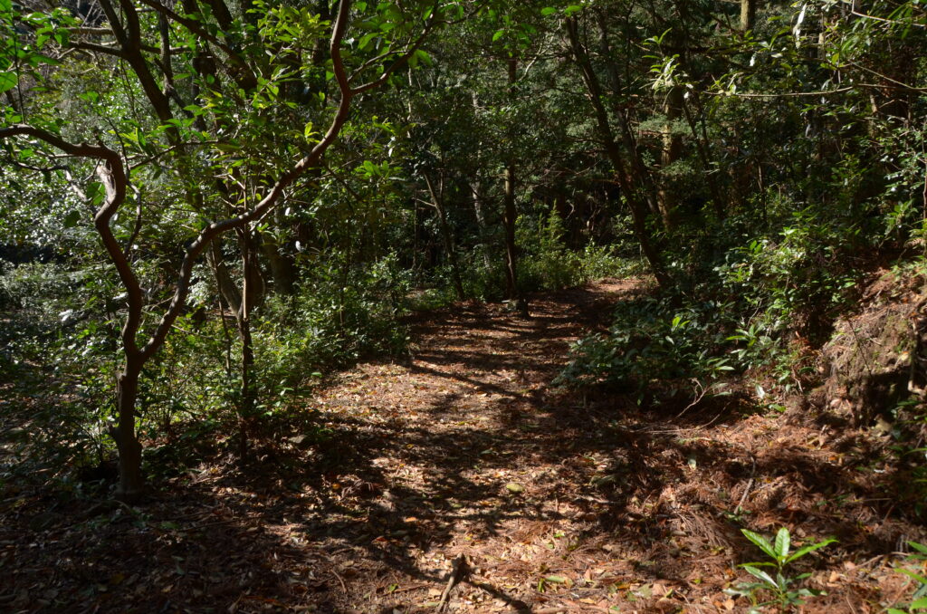 【始神峠(はじかみ)】 始神峠は江戸時代に改修されかつて巡礼者の通った江戸道と、明治時代に主に物資を運ぶため、大八車が通れるように造られた明治道の二つの登り口がありますが、頂上で合流しています。(1枚目写真は江戸道)