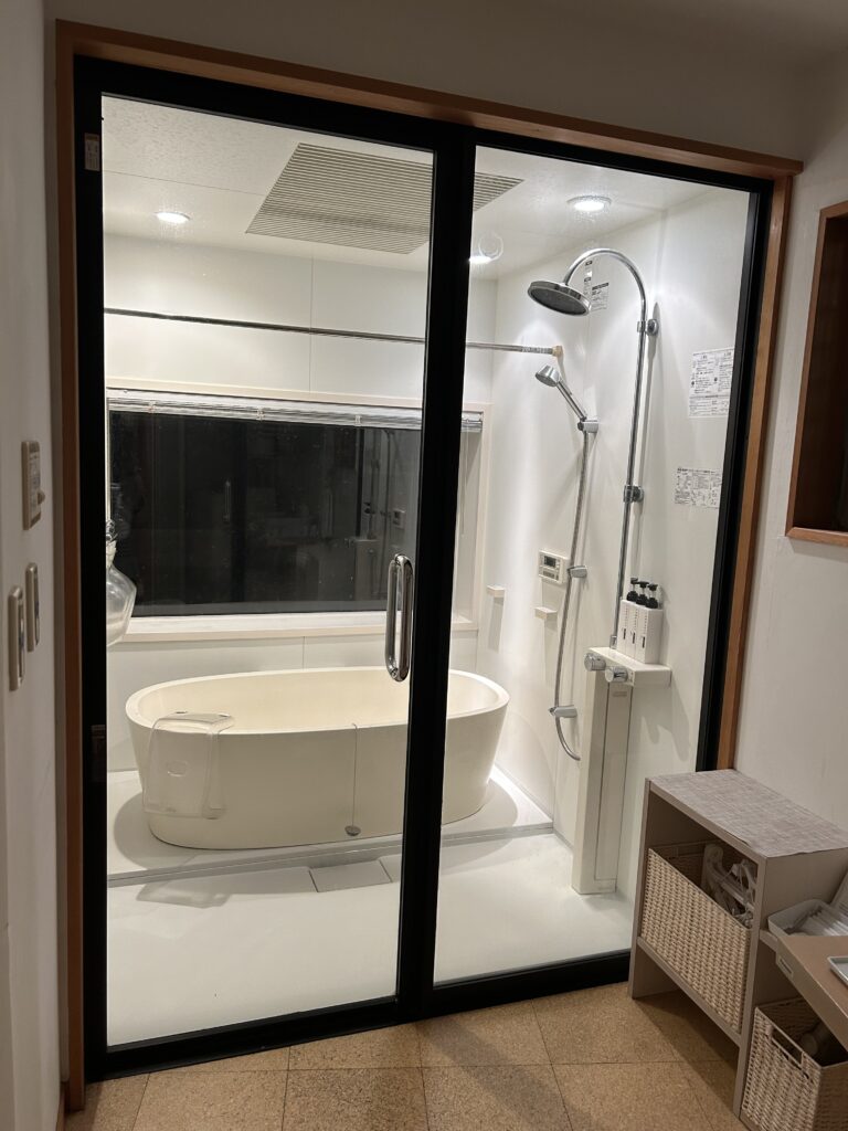 お庭やテラスのブランコに座って澄んだ空気の中で星空を見上げるのもいいですが、湯舟に浸かって窓越しに星空を見上げるのも窮楽通楽ならではの体験です。