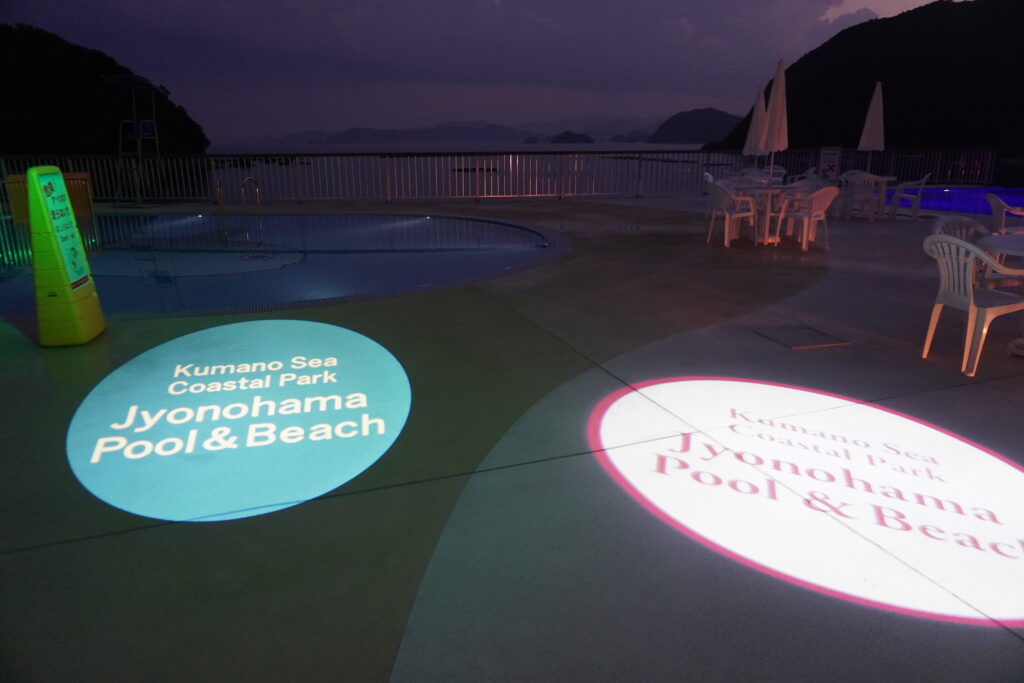 城ノ浜ナイトプールでは、紀北町の「海と山」と幻想的なライトアップを味わうことができます。