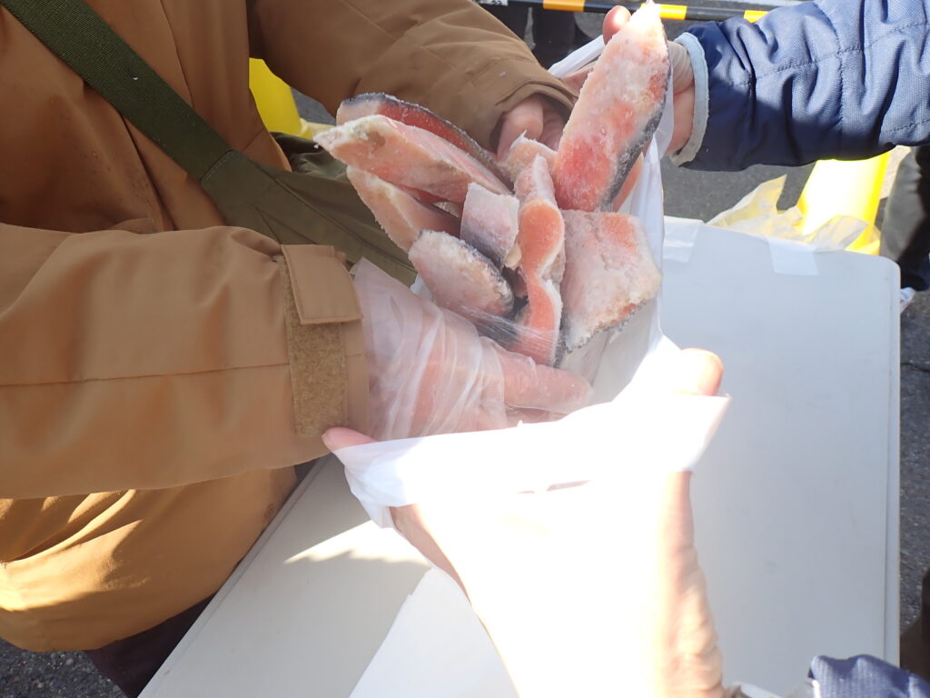 ビニール袋に冷凍の鮭を詰め放題でなんと1,000円!