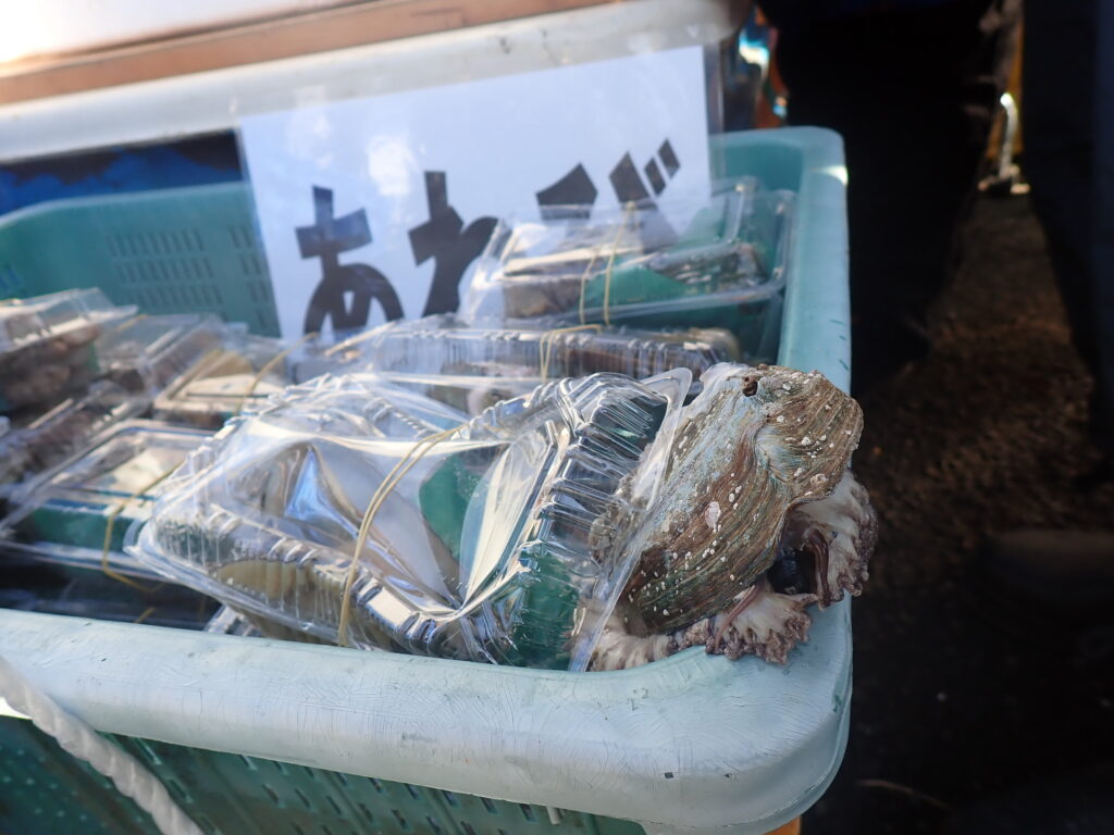 上保商店から脱走中のあわびです。こんな新鮮な食材を探しに来てみませんか?