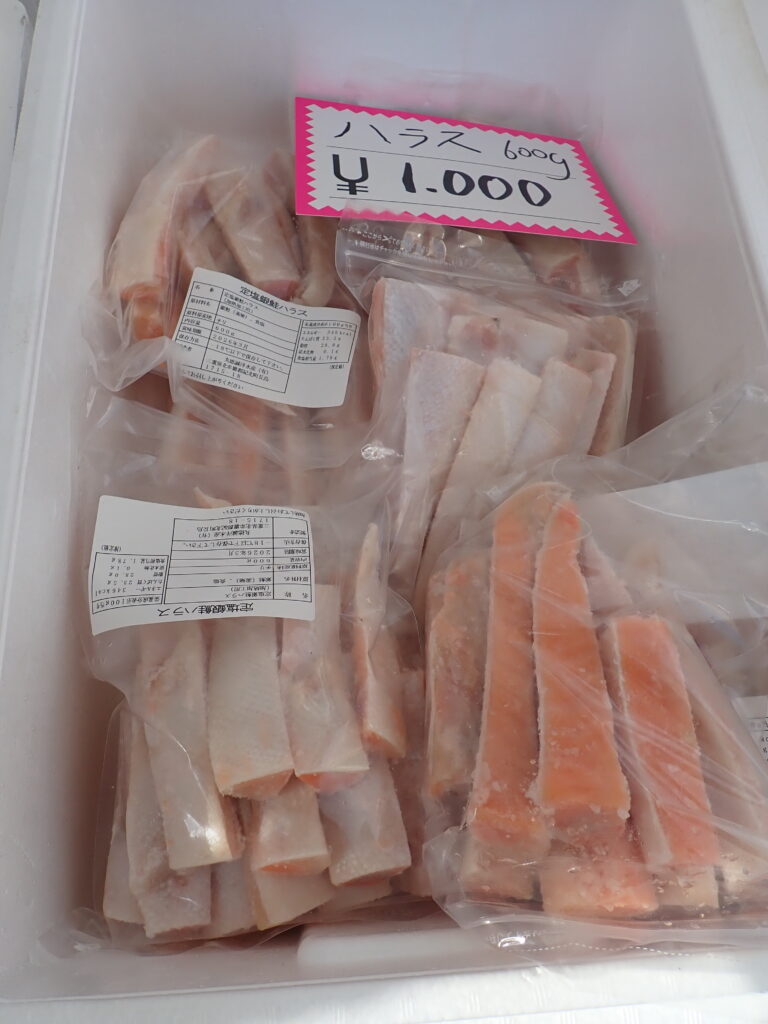 その他の注目商品として、500円の赤エビや1,000円の鮭のハラスがあります。
