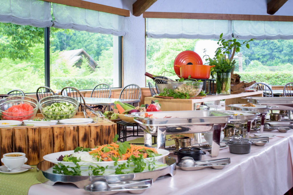 地元で採れた新鮮な食材をふんだんに使った料理や、和洋の多彩なメニューで季節を楽しめるバイキングとなっております。