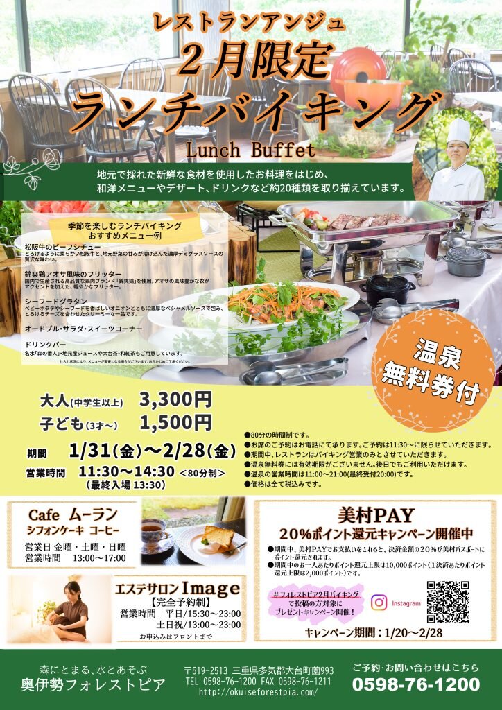 この記事では奥伊勢フォレストピアにあるレストランアンジュにて開催するランチバイキングについてご紹介します!