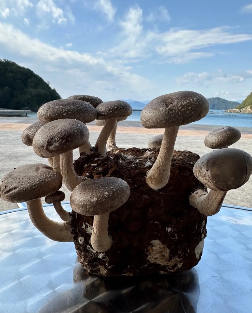 オプションで、菌糸しいたけから直接捥ぎってバーベキューで味わえます。