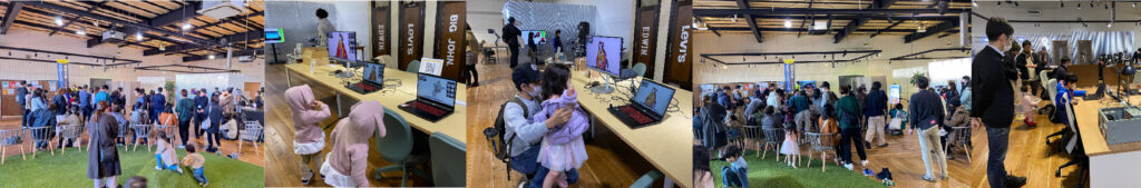 こちらの写真は、昨年の様子ですが、パソコンの前に立って身振り手振りをすると、その動きがリアルタイムでアバターに反映されるブースの様子です。自分の動きが画面上のキャラクターとリンクする不思議な体験を、ぜひ会場で味わってみてください。