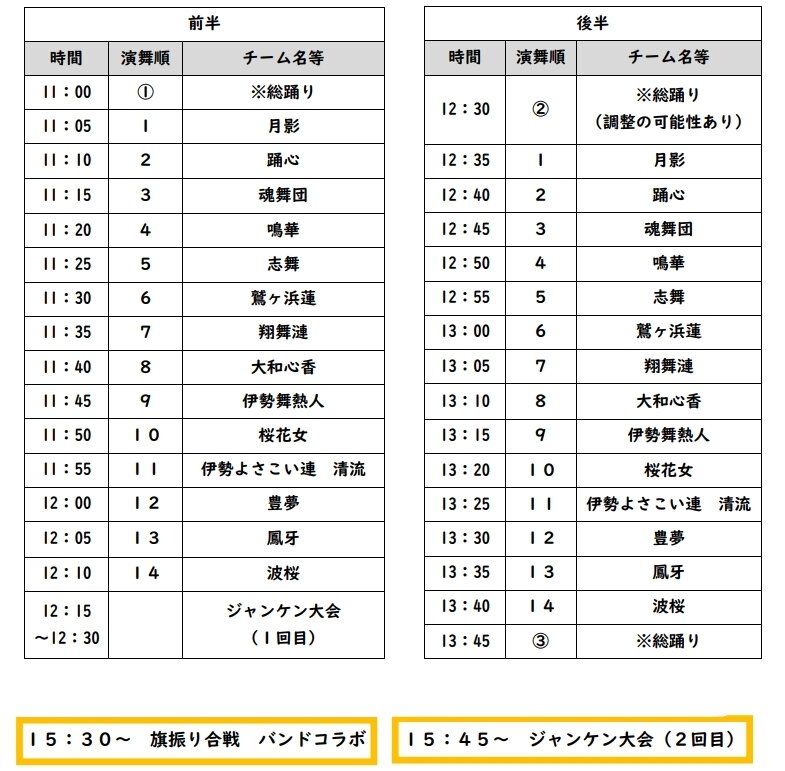 多彩なチームによる演舞が続き、フィナーレでは大迫力の総踊りも予定されています。