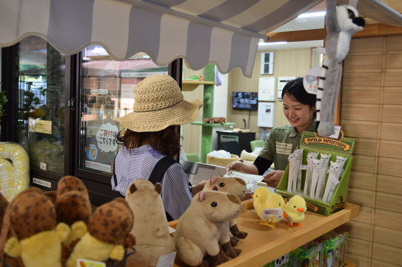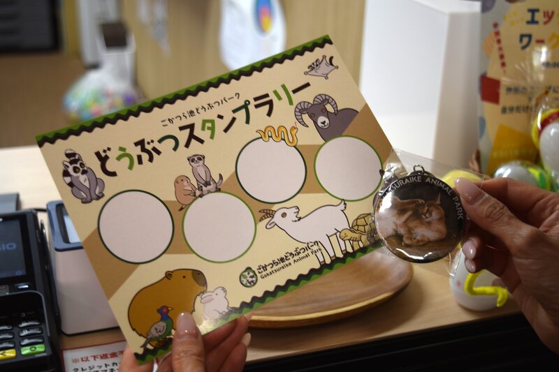 今回の「どうぶつスタンプラリー」の参加方法は、売店で参加費500円を支払い、スタンプカードをゲットし、参加賞のキーホルダーが入った抽選箱から1つ引いて始まります。