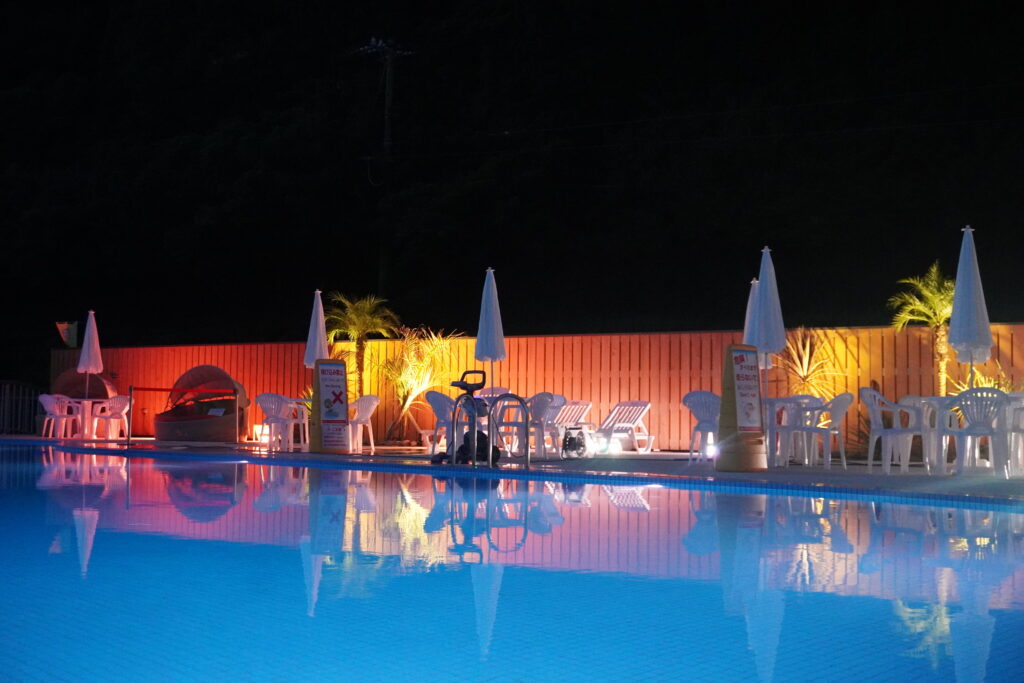 日没後はライトアップされたナイトプールに早変わりし、カップルや友人グループにも人気です。