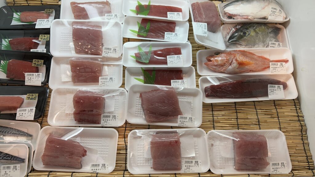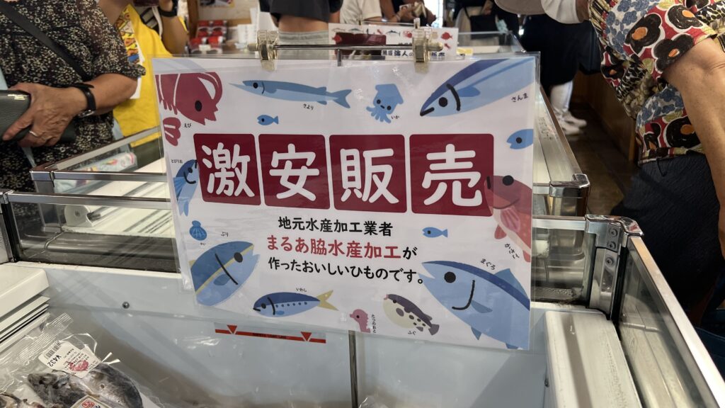 店内には新鮮な海産物や加工品がずらりと並び、お手頃価格なのが嬉しいポイント!