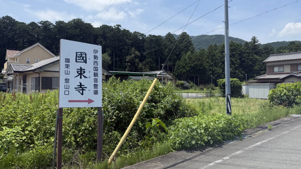 2分ほど真っ直ぐ走っていると國束寺の案内看板が出てくるので、看板に従ってください。