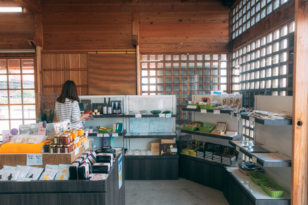 店内には明和町のお土産グルメや特産品が並び、広々とした休憩スペースも設けられています。