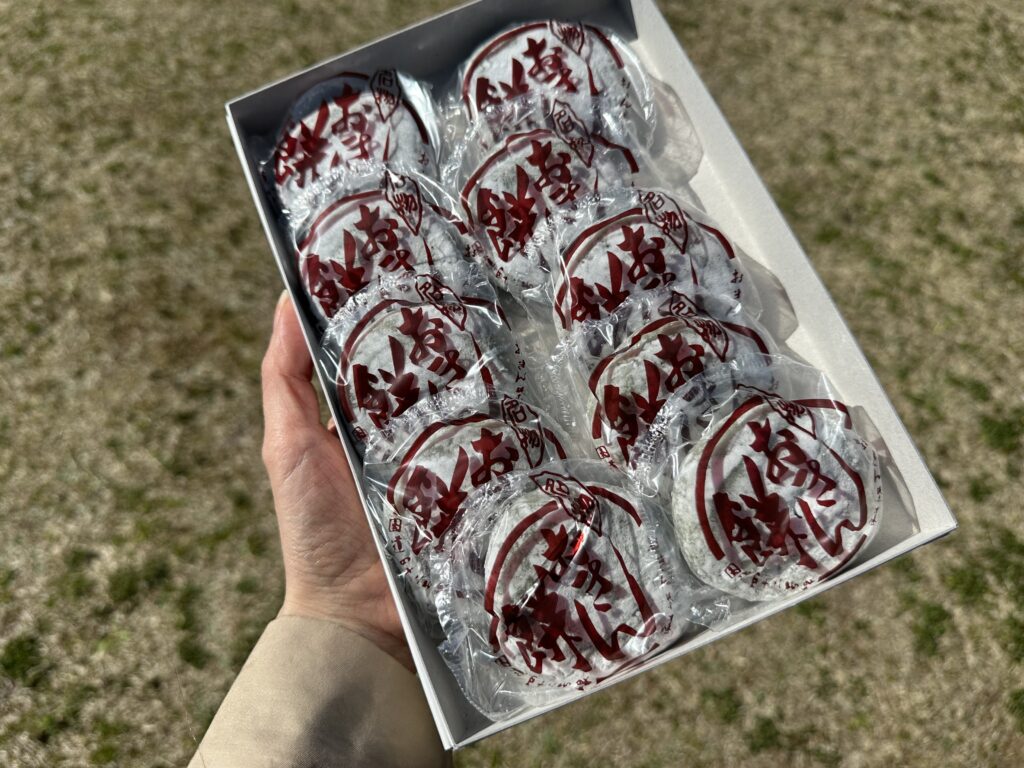 ずっしりと甘い粒あんが詰まったヨモギ餅は、素朴な味わいが長年愛され続けてきた理由でしょう。