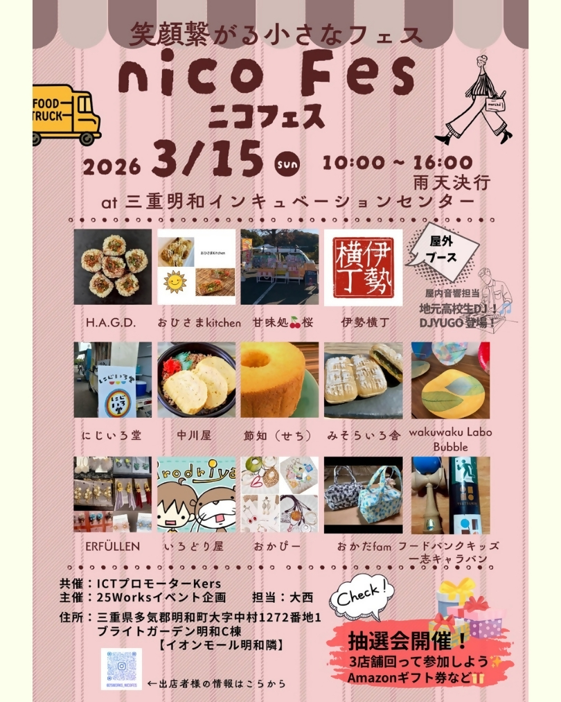 同日・同エリアで、春の演舞が華やかな「春よさフェス」、明和インキュベーションセンター内で開催されるマルシェ「nico Fes(ニコフェス)」も同時開催。