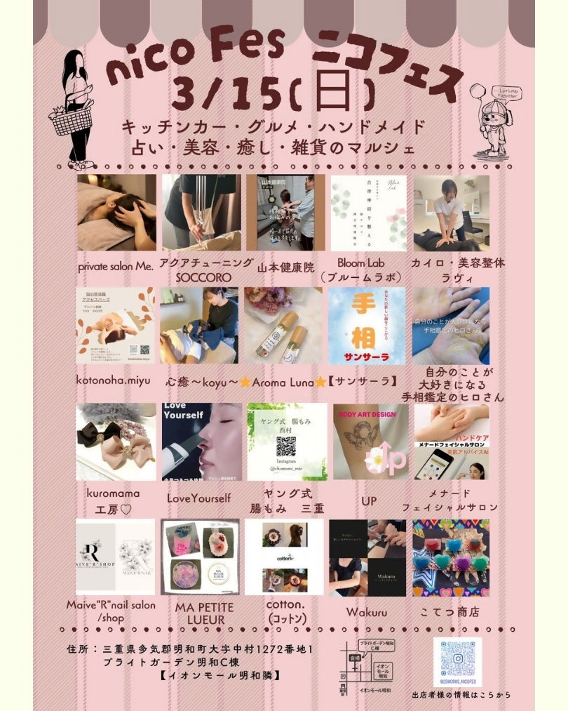 たとえば、整体・アロマ・ハンドケアなど、ちょっと自分を甘やかしたい日にぴったりの内容が並びます。会場を歩くだけで、気分がふっと軽くなるような雰囲気です。