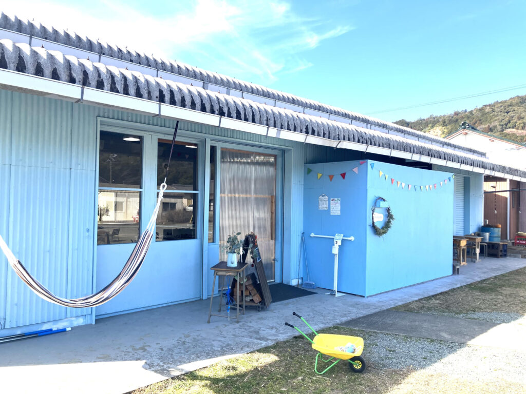 のどかな田舎道を進むと、ポツンと現れる白と青色が素敵な外観のお店。