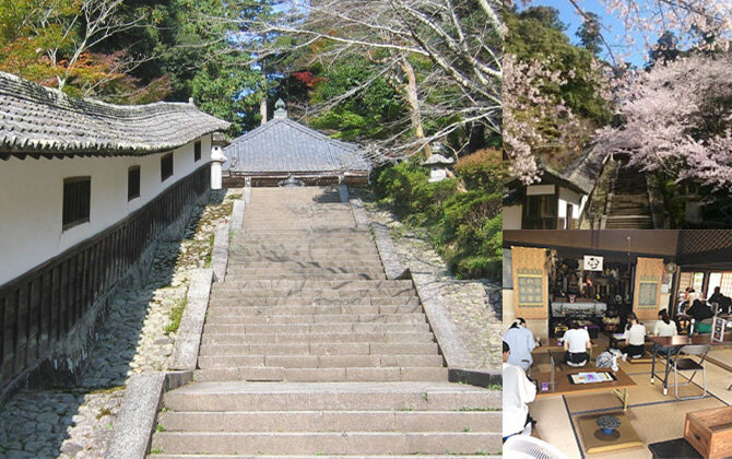 地元では 「丹生大師」として親しまれております。丹生の街を見おろす雄大かつ壮大な山門をくぐり抜けると、境内には四季を通じて美しい風景が広がります訪れる人をたのしませます。こちらでは写経、お香作りなどの体験いただけます。