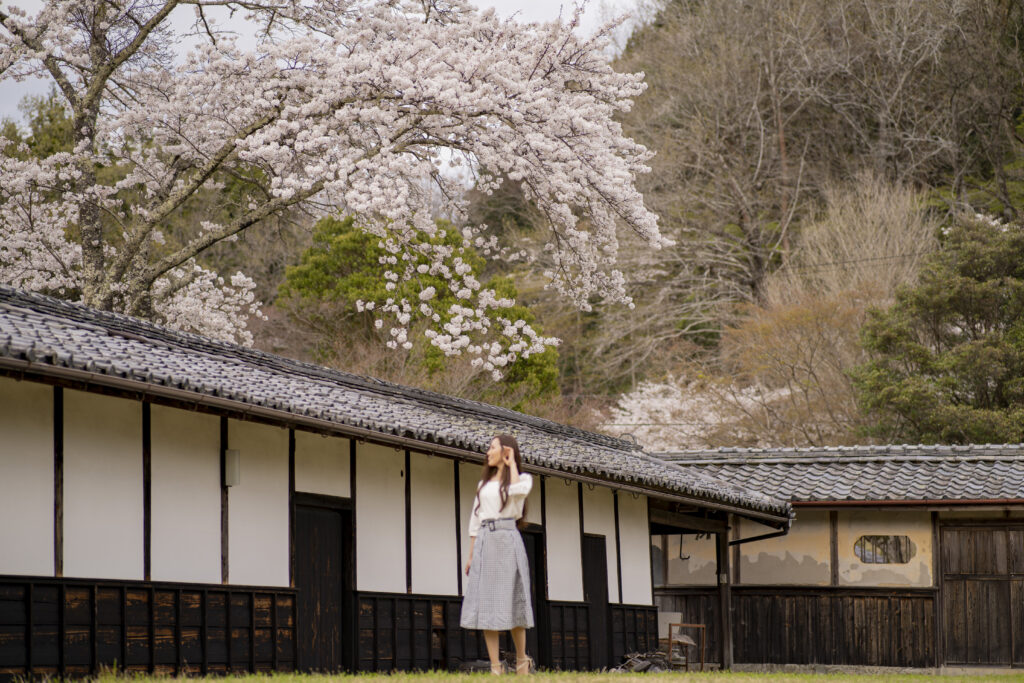 知る人ぞ知る桜の名所です。明治時代の風情ある建築物に桜が映えますよ。周辺は迫るような里山に囲まれていて、まるでタイムスリップしたような気分になります。