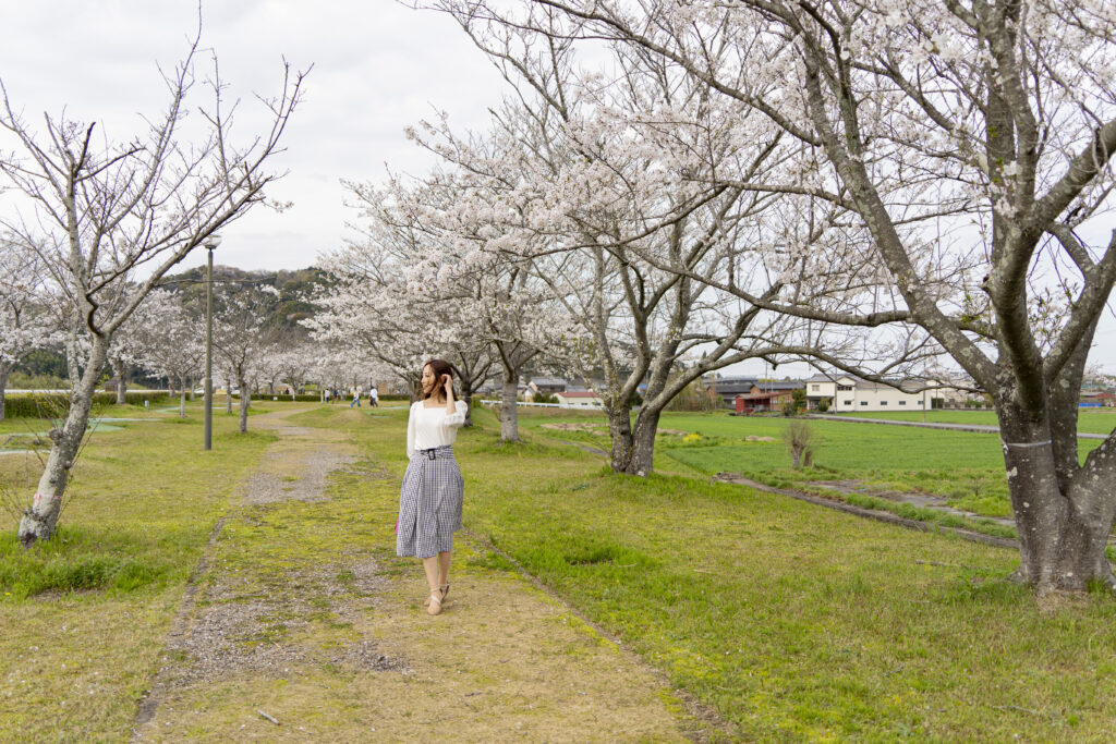 多気町を流れる「佐奈川」に沿って広がるこの公園には、約100mの桜並木があります。田畑を見渡す開放感のある公園。多気駅に近いためJRが走る姿を見ることもできます。比較的空いているので、ゆっくりとお花見を楽しめますよ。