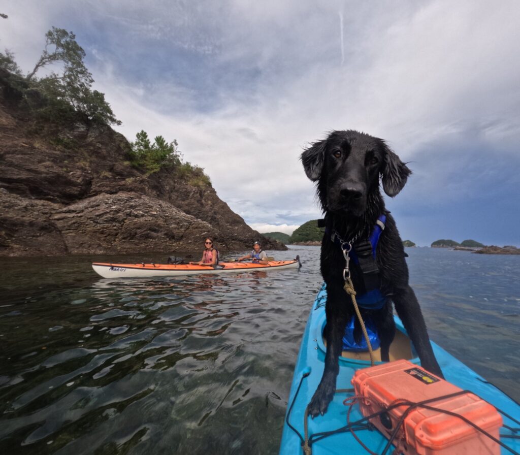 カヤックに乗って、伴走してくれるインストラクターと無人のビーチへ向かった後は、 ワンちゃんと一緒にビーチ散策や磯遊び、シュノーケリングも楽しめます。