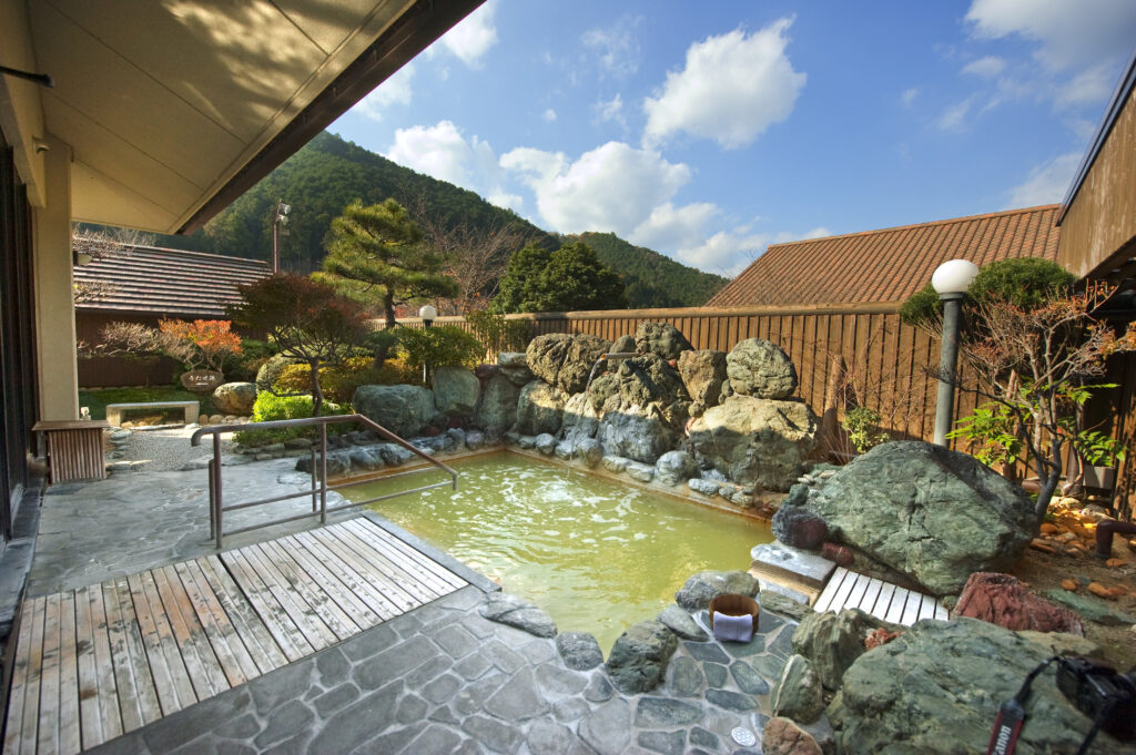 森林浴も同時にできる露天風呂から、広々とした大浴場、 月替わりの薬草風呂まで。日帰り利用は11:00から入浴できます。