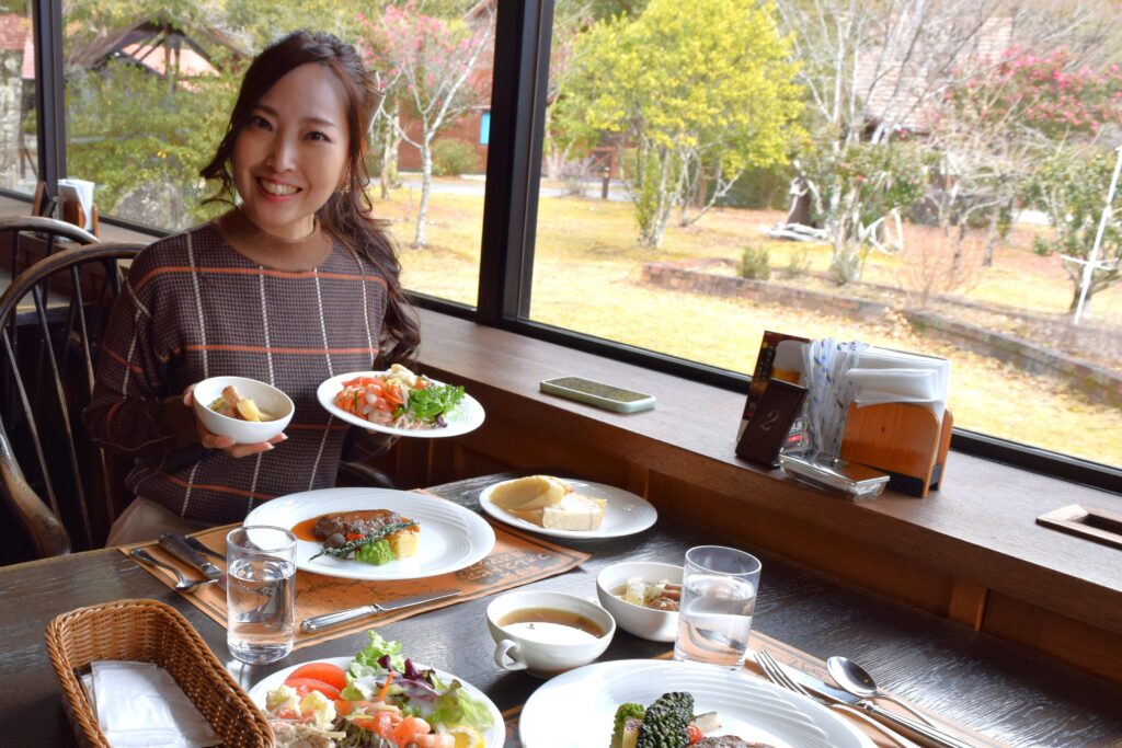 ランチは、奥伊勢フォレストピア内にある「レストラン アンジュ」へ。2024年2月は、大人気の温泉付ランチバイキングが開催されています。