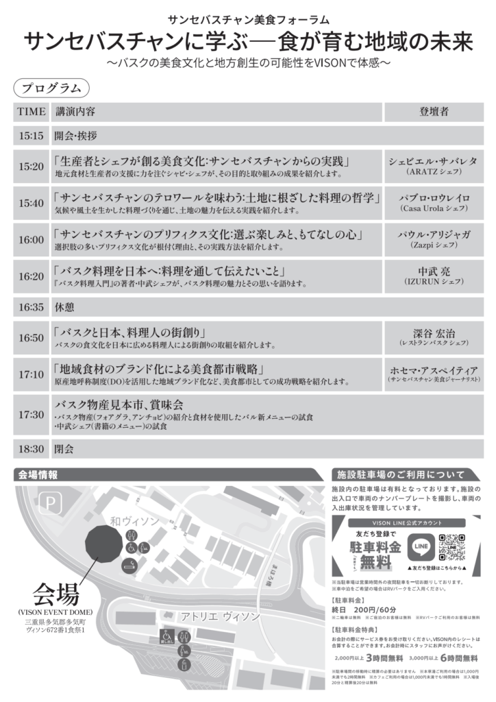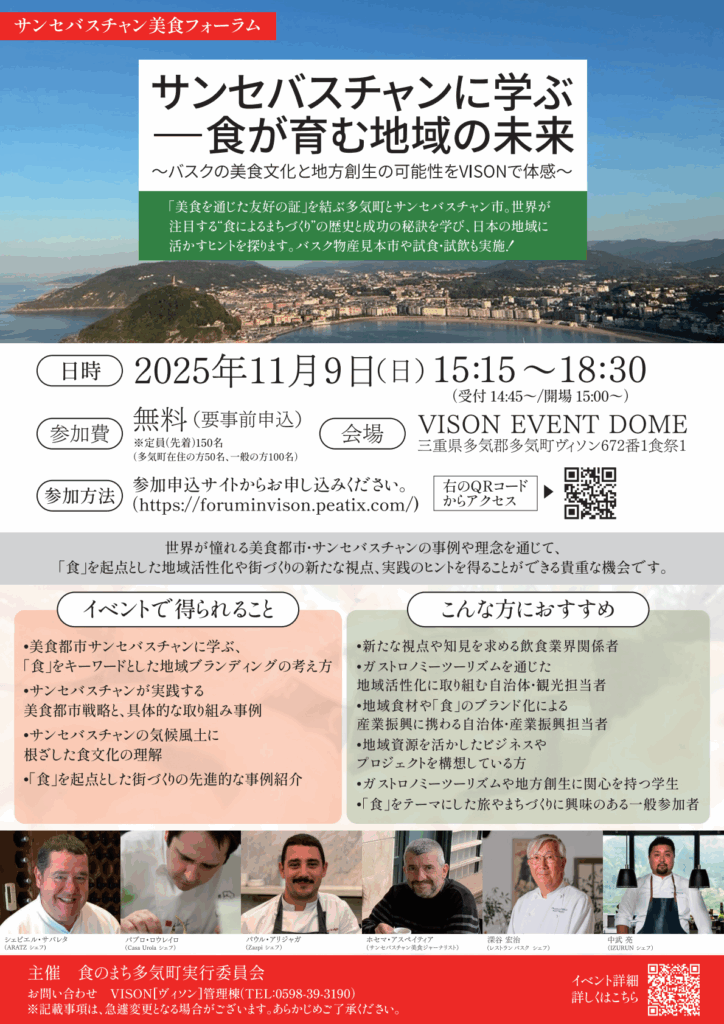 サンセバスチャン美食フォーラム『サンセバスチャンに学ぶ、食が育む地域の未来』~バスクの美食文化と地方創生の可能性をVISONで体感~が開催されます。