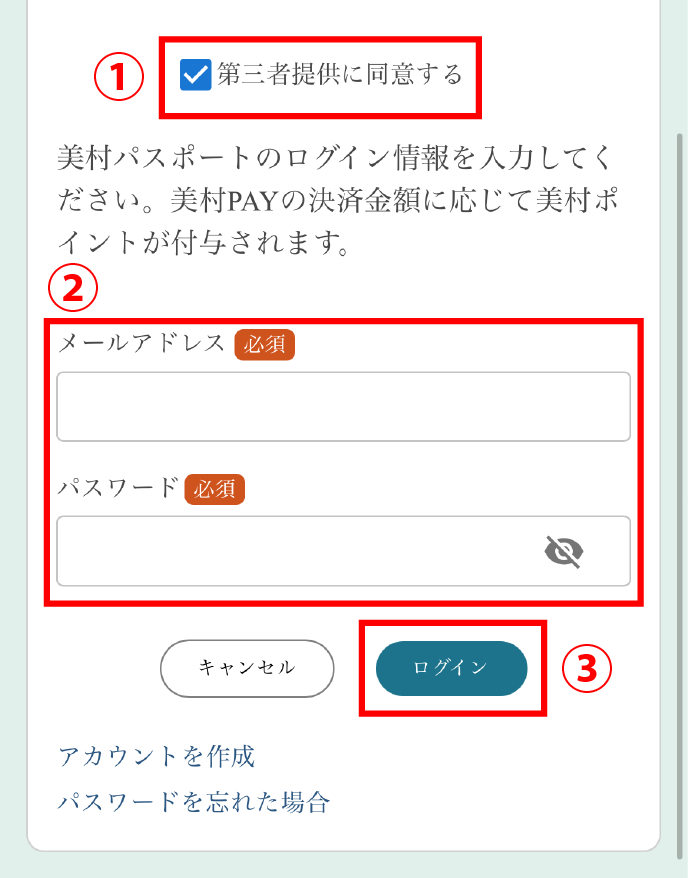 - 手順(6) 美村PAYにログインしてパスポート連携