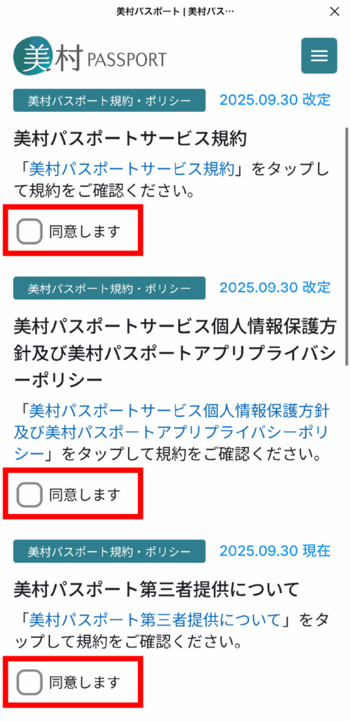 すでにアプリ版「美村パスポート」に会員登録されている方は、手順(5)へ進んでください。