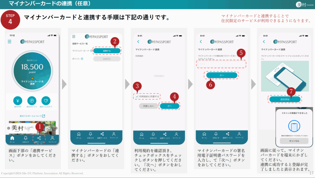 ⑤美村パスポートアプリ内で連携するためにマイナンバーカードで登録を行うこと