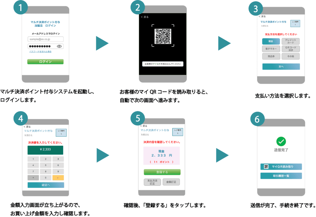 その後は、「マルチ決済ポイント付与システムの使い方」でご説明した手順と通り進めます。