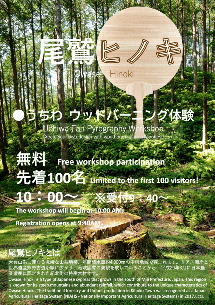 先着100名様限定!無料で尾鷲ひのきのうちわ絵付け体験ができます。