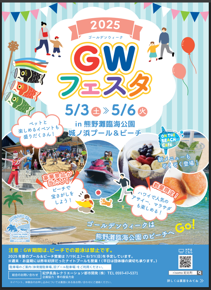 注意:GW期間は、ビーチでの遊泳は禁止です。