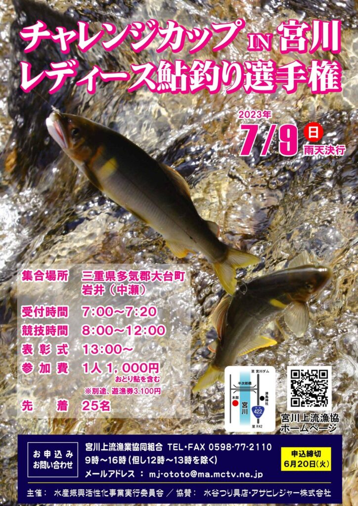 三重県・大台町、宮川上流で「チャレンジカップIN宮川・レディース鮎釣り選手権」の開催が決定しました。