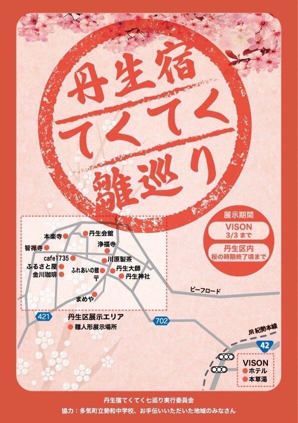 ★VISONの他、丹生区内10箇所程度でひな飾りを展示し、「丹生宿てくてく雛巡り」と題してまち歩きをPRしていきます。