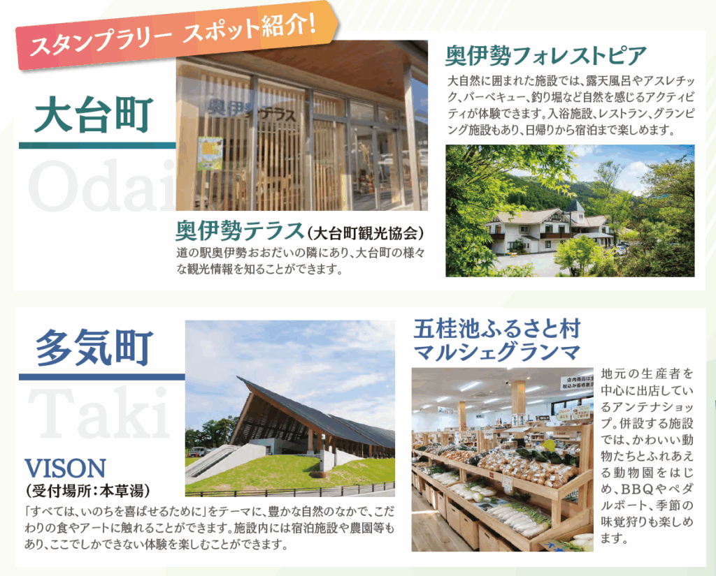 【周遊スポット】 ※奥伊勢フォレストピア以外の3か所どこからでも周遊スタートが可能です。
